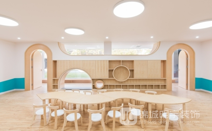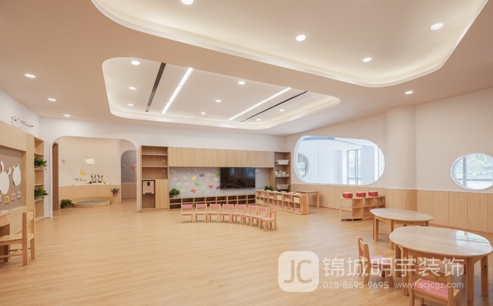 錦城明宇裝飾為成都長(zhǎng)頸鹿媽咪托育中心打造了一處充滿(mǎn)溫馨與童趣的空間。設(shè)計(jì)以柔和的木質(zhì)元素與簡(jiǎn)潔的白色為主基調(diào),營(yíng)造出明亮、開(kāi)放的環(huán)境。細(xì)膩的細(xì)節(jié)處理和流暢的空間布局,不僅提升了視覺(jué)美感,更注重孩子們的安全
