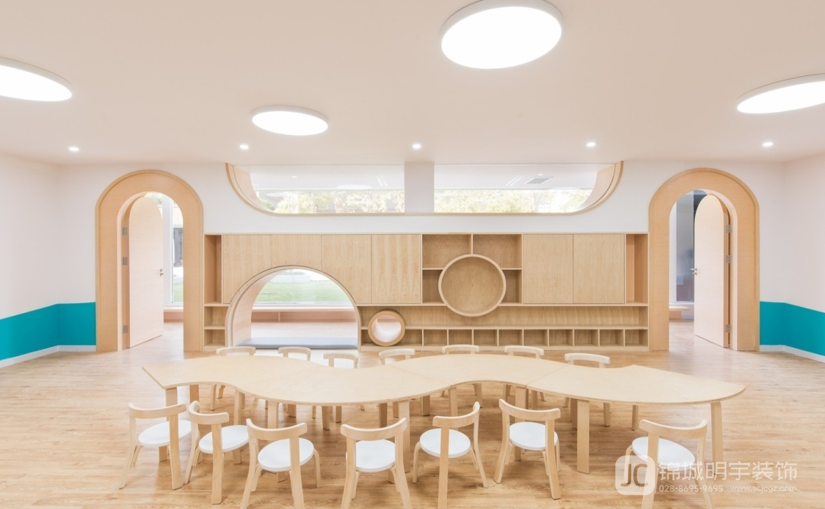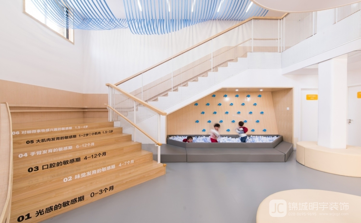 百科分類:托育早教空間 發(fā)布時(shí)間:2024-09-30 14:57:57 瀏覽:0早教裝修設(shè)計(jì)在早教中心的設(shè)計(jì)中,如何營造出一個(gè)既充滿活力又富有趣味性的空間,是每一個(gè)設(shè)計(jì)師面臨的挑戰(zhàn)。早教裝修設(shè)計(jì)而這次的早教中心項(xiàng)目,通過環(huán)形樹屋和小舞臺(tái)的巧妙結(jié)合,不僅實(shí)現(xiàn)了空間的流動(dòng)感,還將趣味性融入其中,創(chuàng)造出一個(gè)充滿活力的教育環(huán)境。