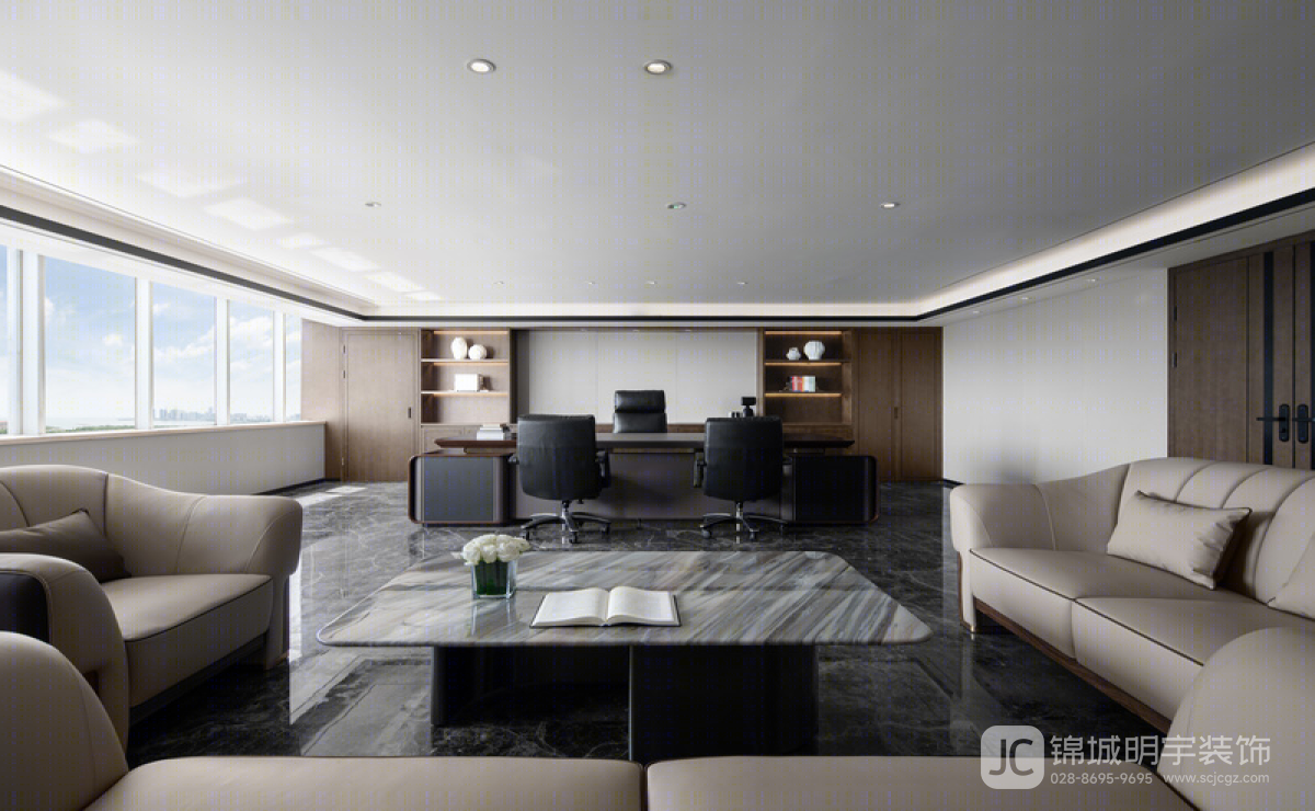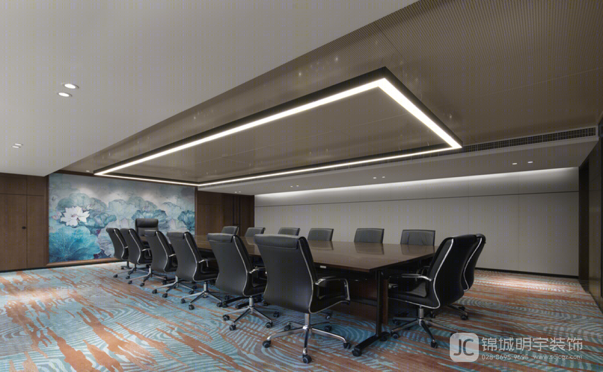 會議室:傳統(tǒng)與現(xiàn)代的對話會議室的設(shè)計(jì)是整合中國傳統(tǒng)元素的一個亮點(diǎn)。墻面上大幅的水墨畫,展現(xiàn)了中國傳統(tǒng)文化的深厚底蘊(yùn),與現(xiàn)代簡約的會議桌椅形成鮮明對比。地毯的色彩與圖案靈感來源于傳統(tǒng)的中國紋樣,細(xì)節(jié)中透露出設(shè)計(jì)師對傳統(tǒng)文化的致敬。