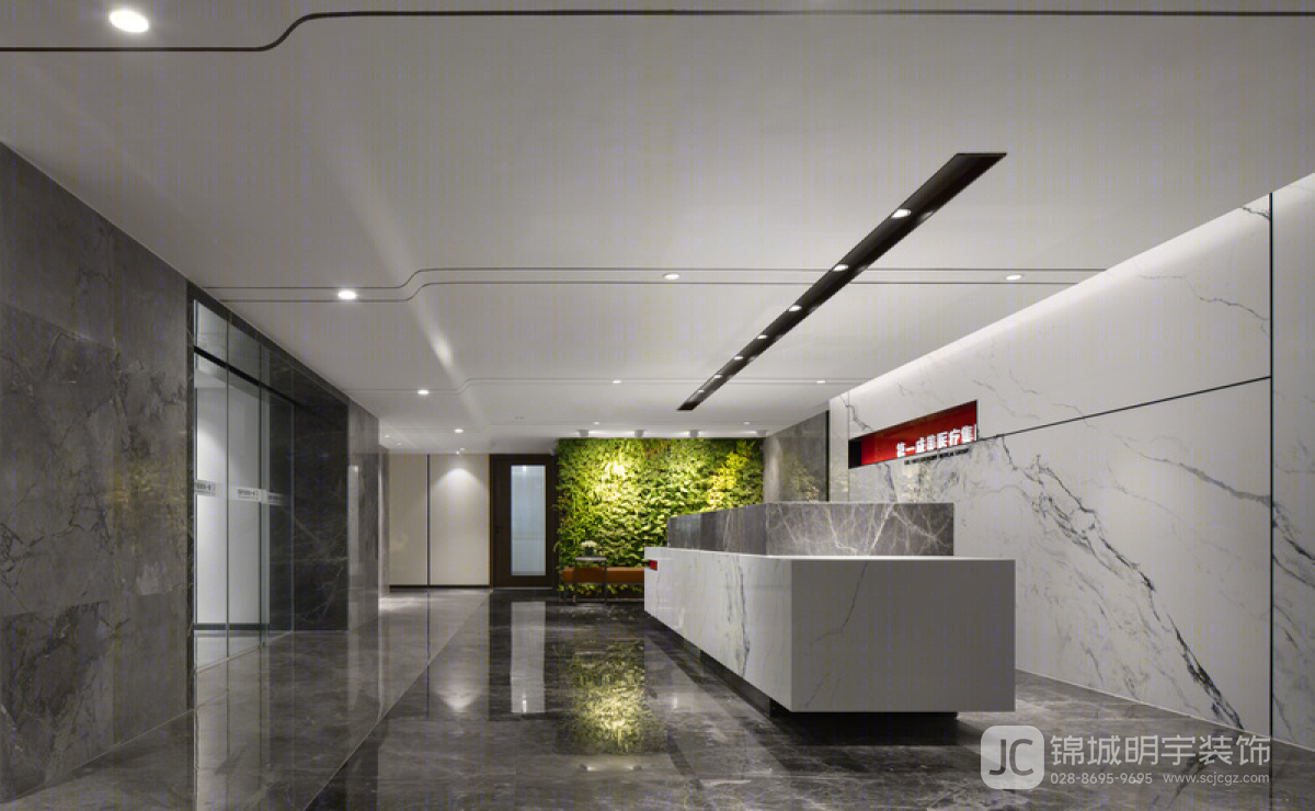 前廳設(shè)計(jì):現(xiàn)代與自然的交融:進(jìn)入辦公室,首先映入眼簾的是極具現(xiàn)代感的前廳設(shè)計(jì)。大理石墻面與地面的運(yùn)用,營造出一種奢華而簡潔的氛圍。而墻面上的綠植墻則為空間注入了生機(jī)與活力,象征著企業(yè)的蓬勃發(fā)展。這種現(xiàn)代與自然的結(jié)合,不僅提升了空間的視覺效果,也為員工和來訪者提供了一個舒適的環(huán)境。