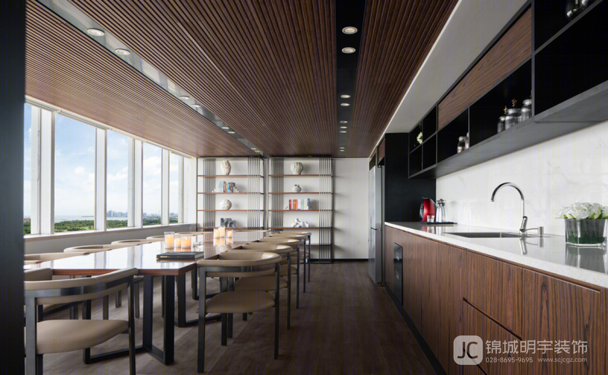 茶水間:功能與美學(xué)的結(jié)合茶水間是員工放松和社交的重要空間。設(shè)計(jì)中采用了現(xiàn)代化的廚房設(shè)備與傳統(tǒng)的木質(zhì)元素結(jié)合,既實(shí)用又美觀。開放式的設(shè)計(jì)讓員工在享用茶點(diǎn)的同時,也能欣賞窗外的美景,放松心情。