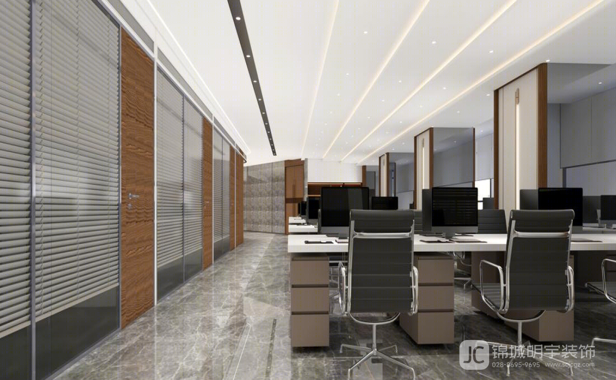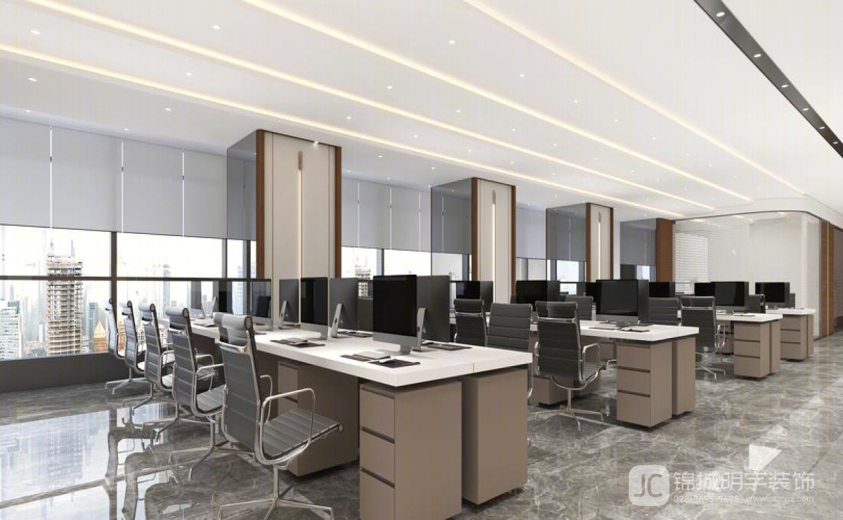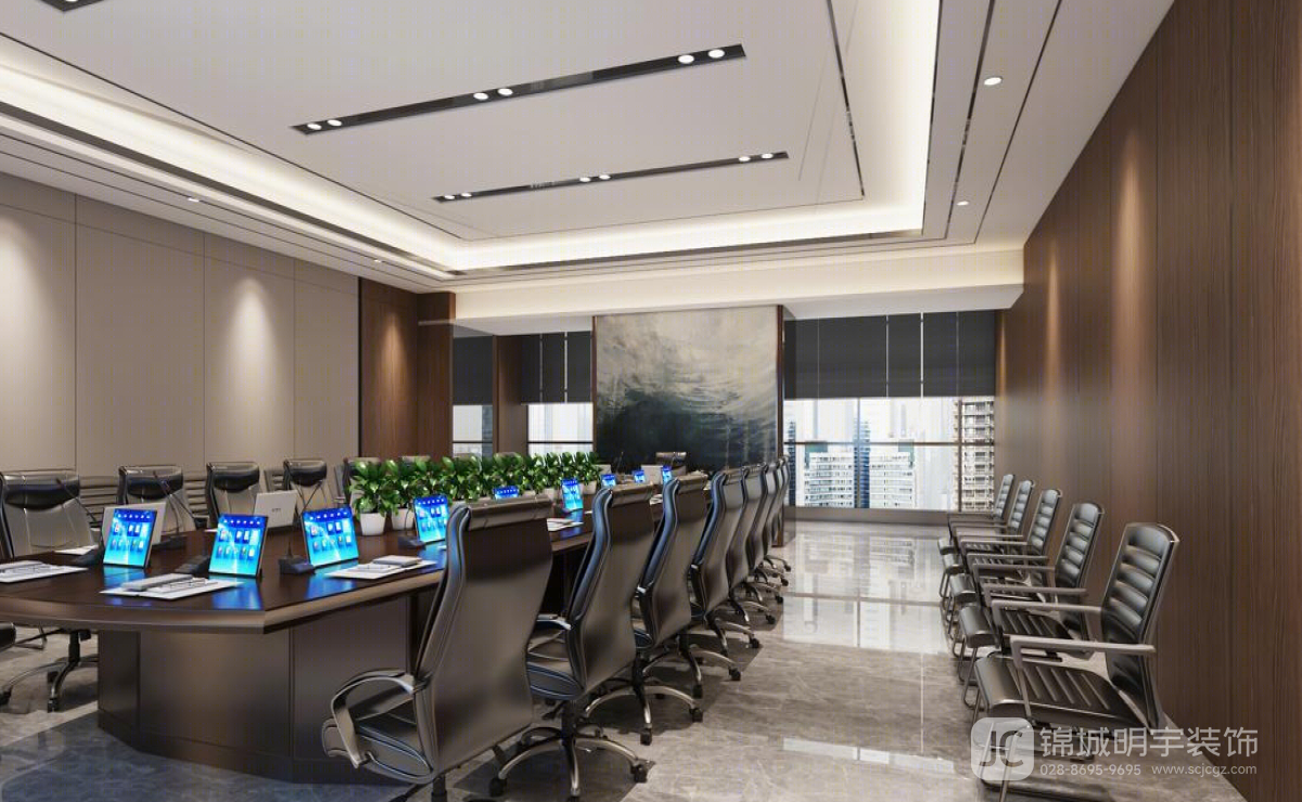 會(huì)議室:會(huì)議室的設(shè)計(jì)注重功能性與舒適性。寬敞的會(huì)議桌和舒適的座椅,配合現(xiàn)代化的多媒體設(shè)備,確保會(huì)議的高效進(jìn)行。同時(shí),墻面采用吸音材料,減少外界噪音干擾,提供安靜的會(huì)議環(huán)境。辦公區(qū):開放式的辦公區(qū)旨在促進(jìn)團(tuán)隊(duì)間的溝通與合作。每個(gè)工位都經(jīng)過精心設(shè)計(jì),確保員工擁有足夠的個(gè)人空間和儲(chǔ)物空間。大面積的落地窗引入自然光線,提升員工的工作舒適度和效率。