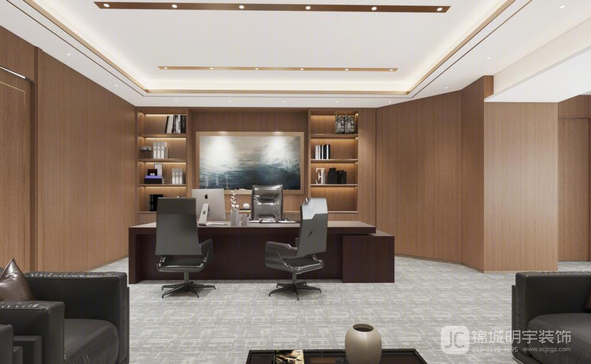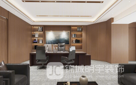 高管辦公室:高管辦公室在設(shè)計(jì)上更加注重個(gè)人品味和隱私性。木質(zhì)書架與辦公桌的搭配,展現(xiàn)出高雅的品位。墻上的藝術(shù)畫作為空間增添了藝術(shù)氣息,提升了整體品位。休息區(qū):休息區(qū)的設(shè)計(jì)以舒適為主,采用柔軟的沙發(fā)和茶幾,提供員工一個(gè)放松和社交的場(chǎng)所。墻上的山水畫不僅增加了文化氛圍,還使空間更具靈動(dòng)性。