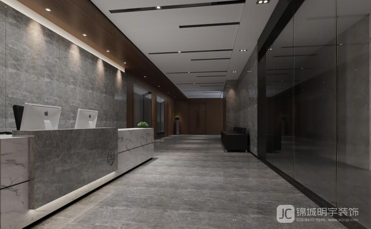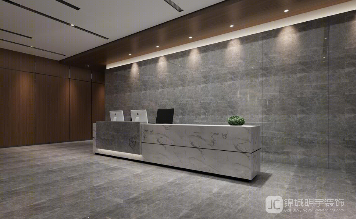 設(shè)計(jì)理念:本次設(shè)計(jì)秉承“簡(jiǎn)約、實(shí)用、現(xiàn)代”的理念,力求在有限的空間內(nèi),通過合理的布局和精致的設(shè)計(jì),提升辦公空間的功能性和美觀性。整體風(fēng)格以現(xiàn)代簡(jiǎn)約為基調(diào),融合高檔材料和創(chuàng)新科技,使空間既具有視覺沖擊力,又能滿足實(shí)際使用需求??臻g布局:接待區(qū)接待區(qū)是公司形象的第一展示窗口。設(shè)計(jì)中采用大理石材質(zhì)的前臺(tái),搭配灰色背景墻,營造出穩(wěn)重而高貴的氛圍。柔和的燈光設(shè)計(jì),增強(qiáng)了空間的層次感和視覺舒適度。