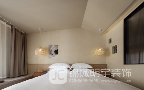房間內(nèi)的木質(zhì)地板和家具選用天然材料,保留了木材的自然紋理,使空間更加貼近自然。綠植的點綴不僅增添了生機,還提升了空氣質(zhì)量,給住客帶來了清新的體驗。沉浸式的民宿體驗:錦城裝飾致力于為住客提供沉浸式的民宿體驗。通過巧妙的空間布局和細節(jié)設(shè)計,讓住客在入住期間能夠全身心地放松與享受。