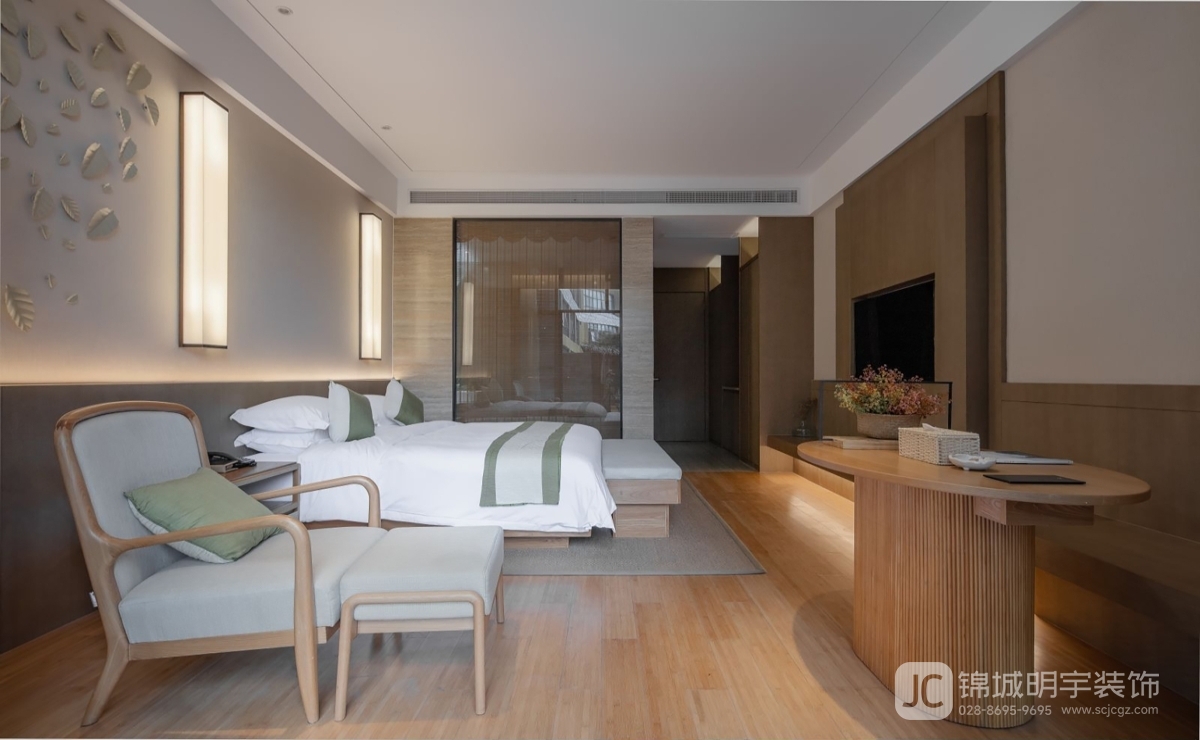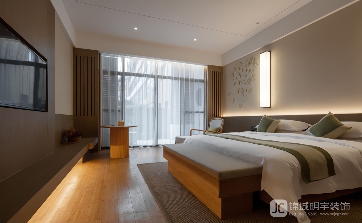 東方美學(xué)的展現(xiàn):東方美學(xué)以其優(yōu)雅和寧靜著稱。在酒店和民宿的設(shè)計(jì)中,我們運(yùn)用了大量的自然元素,如木材、竹子和石材。這些材料不僅環(huán)保,還能為空間增添溫暖與質(zhì)感。室內(nèi)的家具設(shè)計(jì)簡潔流暢,線條優(yōu)美,強(qiáng)調(diào)功能性的同時(shí),也不失視覺上的美感。