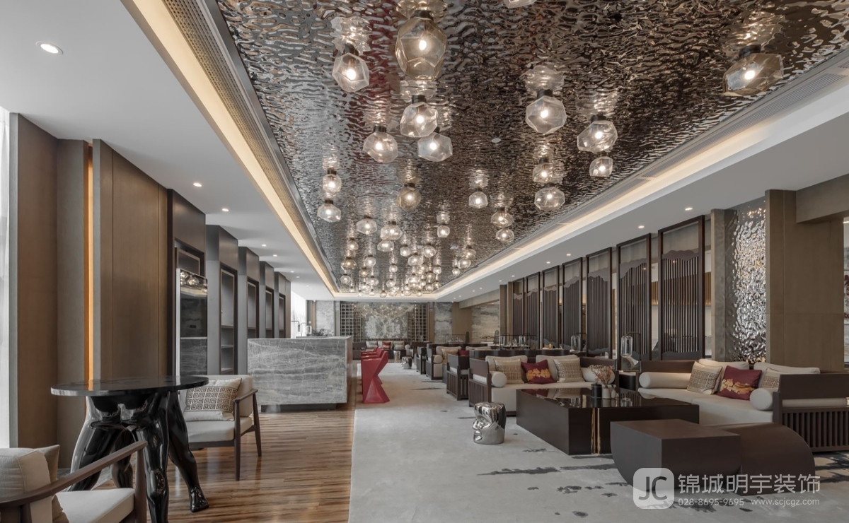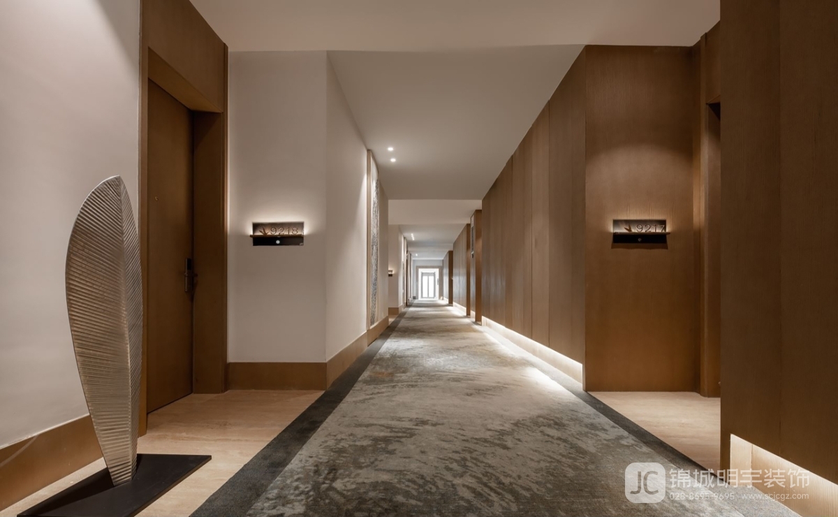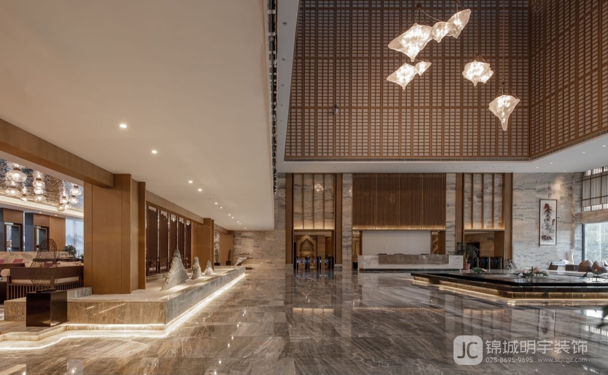 現(xiàn)代與傳統(tǒng)的完美融合:在整體設(shè)計(jì)中,我們將現(xiàn)代技術(shù)和傳統(tǒng)工藝相結(jié)合。高科技的智能設(shè)備為客人提供便捷的服務(wù)體驗(yàn),而傳統(tǒng)工藝則保留了文化的精髓。比如,房間內(nèi)的智能控制系統(tǒng),可以通過移動(dòng)設(shè)備輕松調(diào)節(jié)燈光、溫度和窗簾,而家具的雕刻工藝則展現(xiàn)出匠心獨(dú)運(yùn)的美感。公共區(qū)域的設(shè)計(jì)同樣注重現(xiàn)代與傳統(tǒng)的結(jié)合。大堂的設(shè)計(jì)簡約大氣,采用了大面積的玻璃和金屬材質(zhì),增強(qiáng)空間的通透感和現(xiàn)代感。而墻壁上的傳統(tǒng)紋樣裝飾,則為空間增添了文化的厚重感。