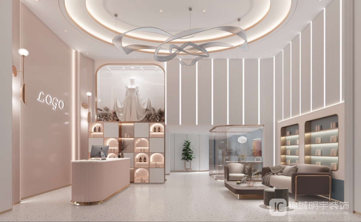 設(shè)計亮點:色彩搭配:整體空間以粉色、藍色與金色為主色調(diào),營造出一種溫暖、舒適的氛圍,仿佛置身于落日的余暉中。材質(zhì)選擇:大理石、金屬與木材的結(jié)合,不僅提升了空間的質(zhì)感,同時也彰顯了輕奢的設(shè)計理念。光影運用:通過燈光的巧妙設(shè)計,營造出不同的光影效果,使空間更加富有層次感與藝術(shù)感??臻g布局:流暢的動線設(shè)計與合理的空間劃分,提升了客戶的使用體驗與舒適度。